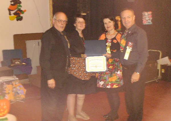 Barry & Dianna Bendle were presented with their Federation certificate, recognizing 20 years of square dancing.The Federation Awards Committee Chairs, Don & Carol Scott, made the presentation at the Timberlea Twirlers Club.
