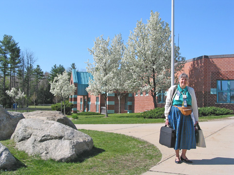 Dottie Welch enjoys the spring sun on her way to the A2/C1 Hall