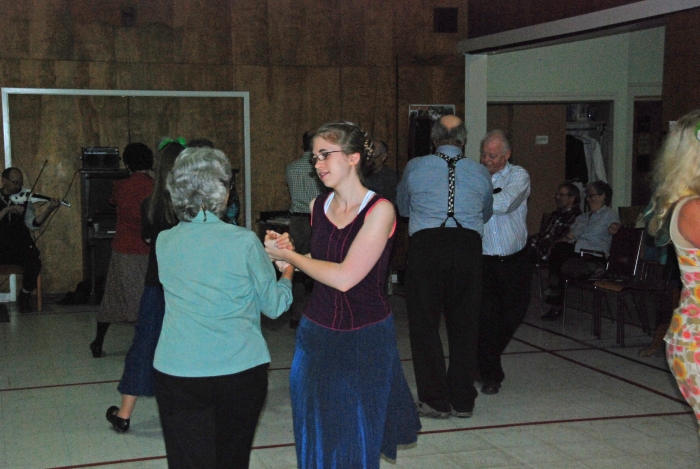 Metro dancers visited the Community Living Group of the Anglican Church in Upper Tantallon on Saturday, May 5, 2012. After a short demonstration assisted by caller Dottie Welch, the dancers were joined by members of the audience who wanted to try square dancing themselves. Bob Ruohoniemi kindly supplied the following pictures.