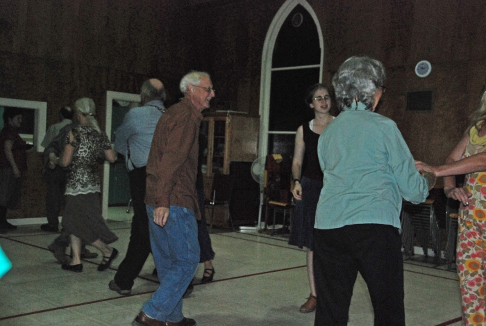So, isn't square dancing just an old-folks's sport? Guess again! Two "boys" in this square are dancing with their granddaughters.