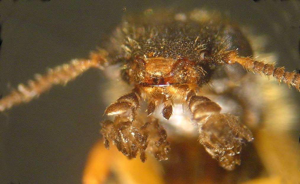Adult males are unusual in having the apical maxillary palpomere modified into a complex, plumose sensory organ.