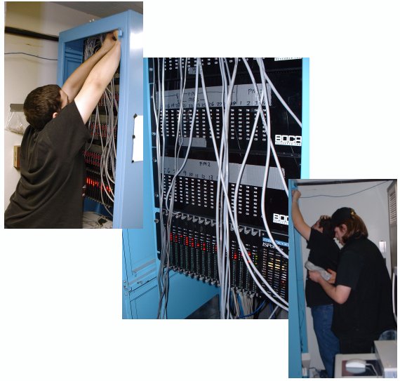 Upgrading Chebucto Plus modems Chebucto Tech Team volunteers worked through Saturday morning to move Chebucto Plus dialup lines to new, more reliable modems. The old Boca rack-mounted modems, shown here in the center image with duct tape labels, will be replaced by the Microcom 64 modem unit seen at the bottom of the image with all the red lights. Click on image to enlarge it.